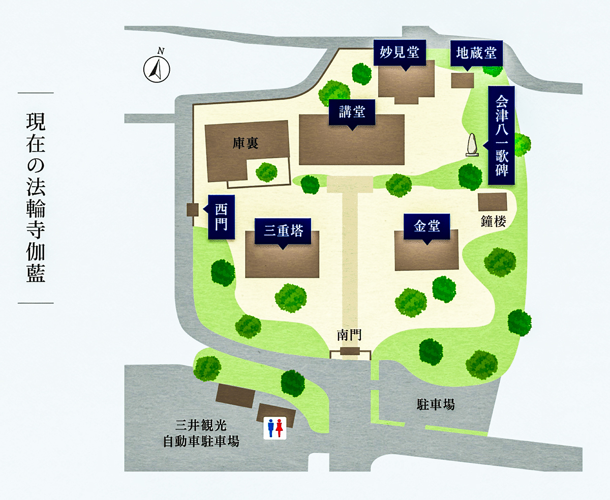 参考例:法輪寺の現在の伽藍(境内図)