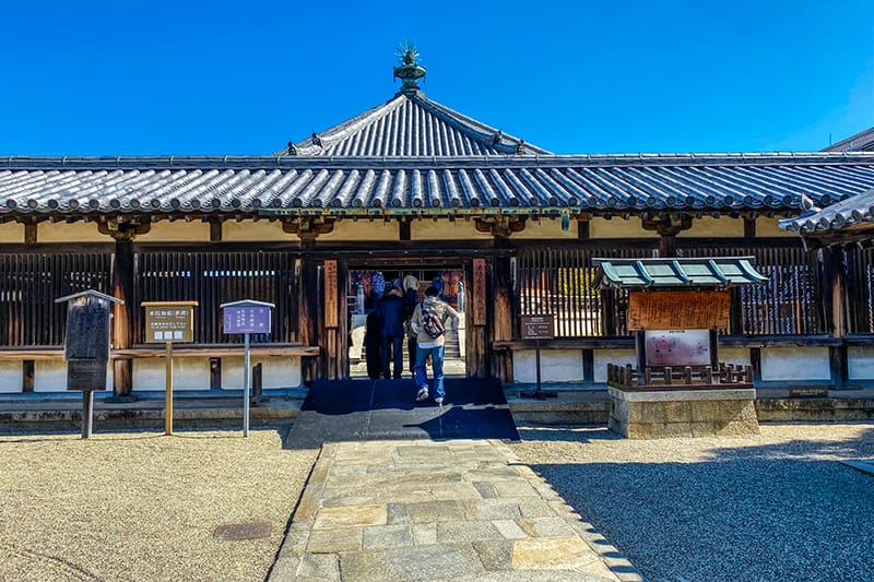 東院伽藍は等身大の聖徳太子像と目される救世観音像を安置した八角円堂の夢殿が心臓部にあたる。